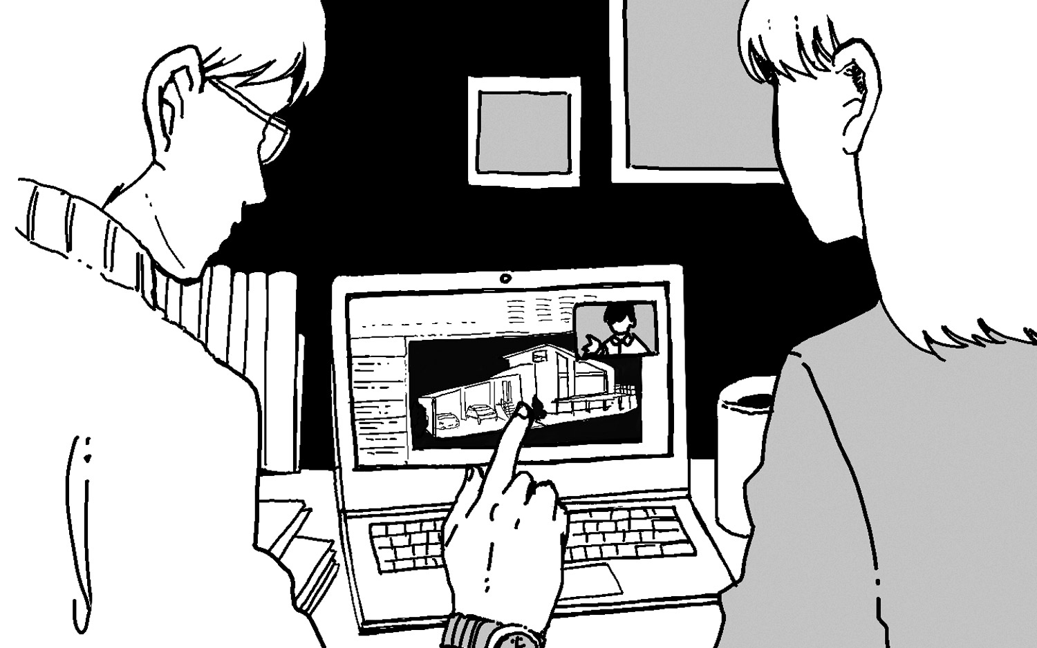 店舗で実施する通常の相談会と同様に、リデザインの設計者がお客様のご要望をお伺いし、物件や設計プランなどの資料を画面を通して共有しながらご提案させていただきます。そのため、ご自宅にいながら対面で実施する相談会と同様のお打ち合わせが可能です。