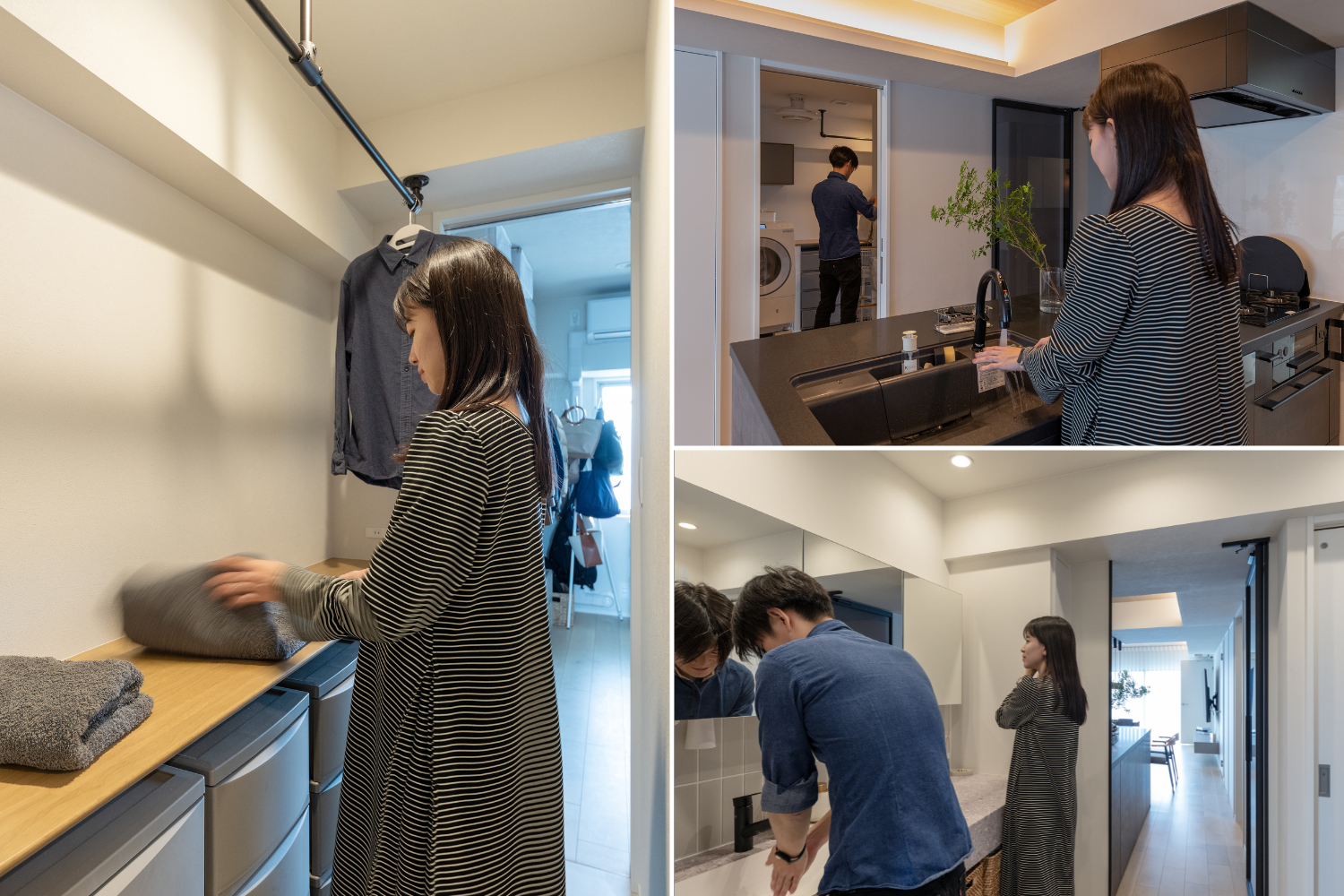 それからマンションという限られた広さの中で、できるだけロスを減らすためにも、廊下は無駄だと考えていました。洗面室と廊下を兼ねたプランになったので、“無駄な空間0%”を実現できました。