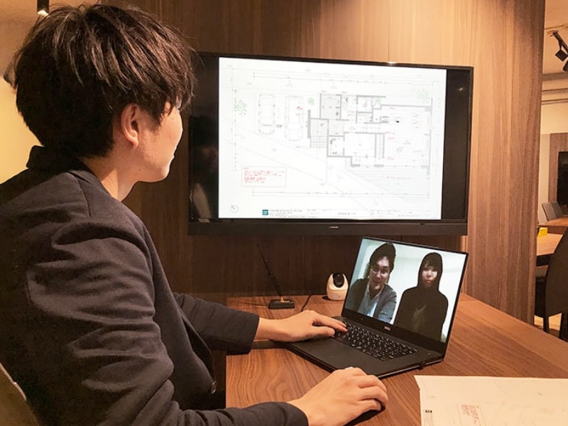 お客様のご要望をおうかがいした上で設計プランを作成するプランナーが物件のご提案や住宅ローン・資金計画のご提案まで直接対応します。ビデオ会議ツール「ZOOM」では、お互いの閲覧している画面を共有することが可能なため、ご要望のイメージである写真や描いた設計プランを画面に映しながら、対面での相談と遜色ないお打ち合わせができます!