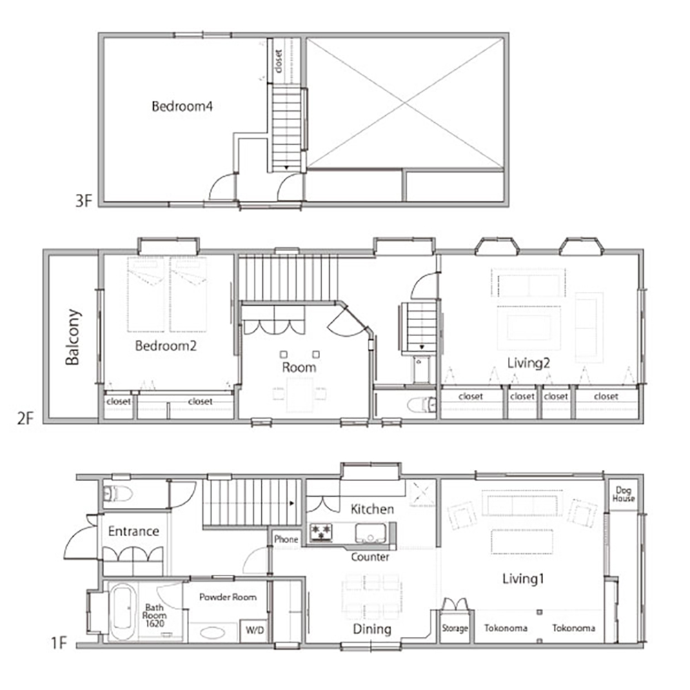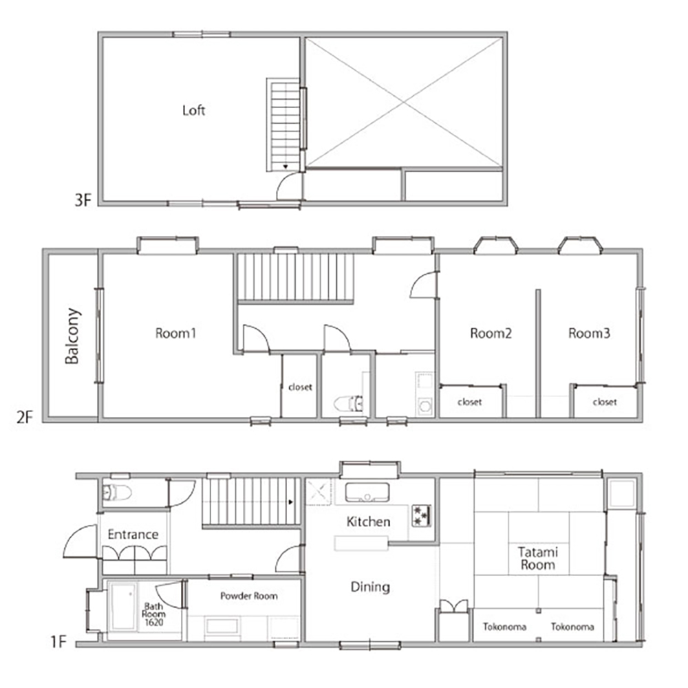 - 4LDK→2ROOM+LDK+L(リビング)+書道室
