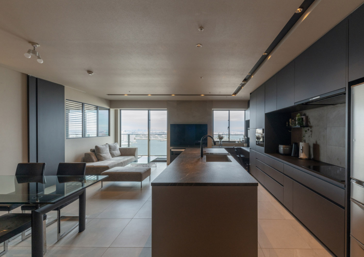 採用する建材1つ1つまで丁寧に検討された細かいご要望を空間に反映していき、美しい眺望や階高の高い空間といった物件のポテンシャルを最大限引き出したリノベーションとなりました。