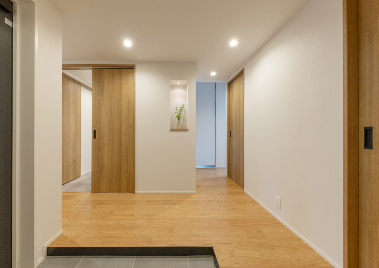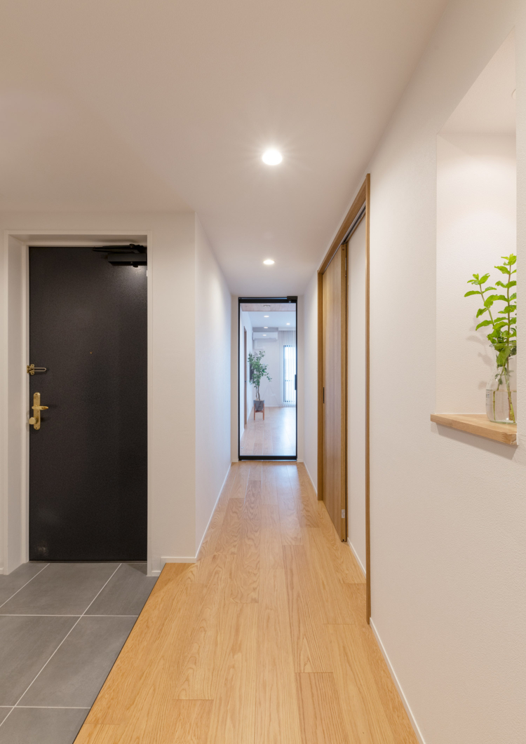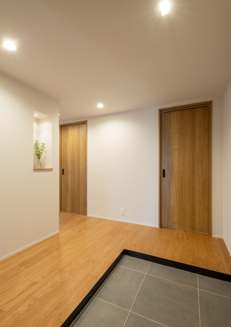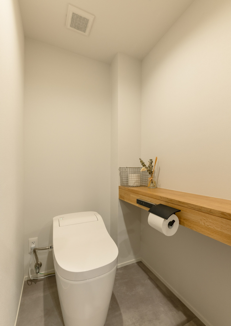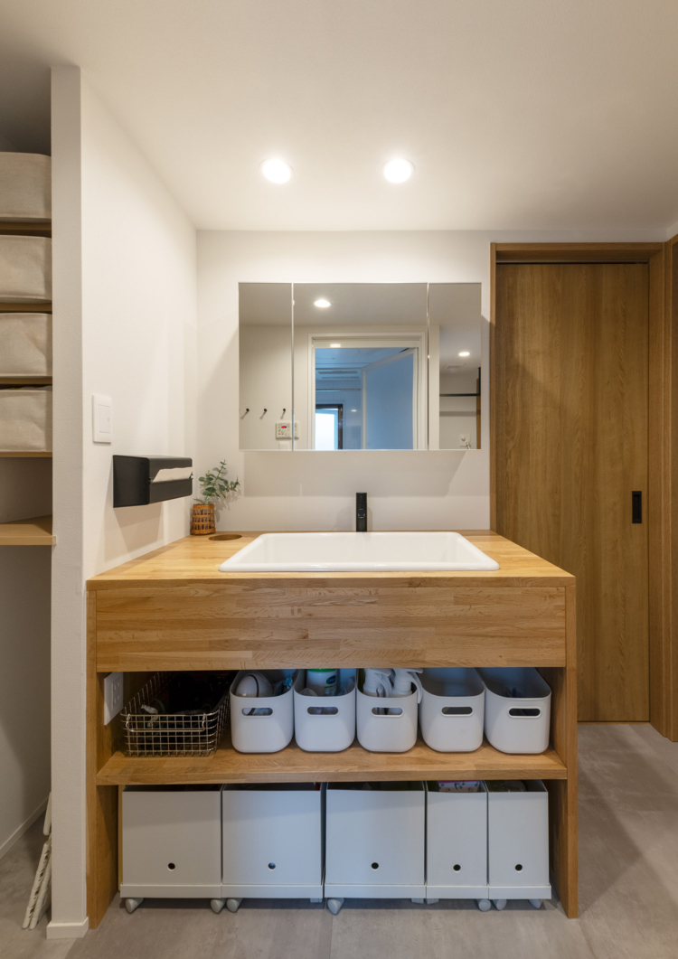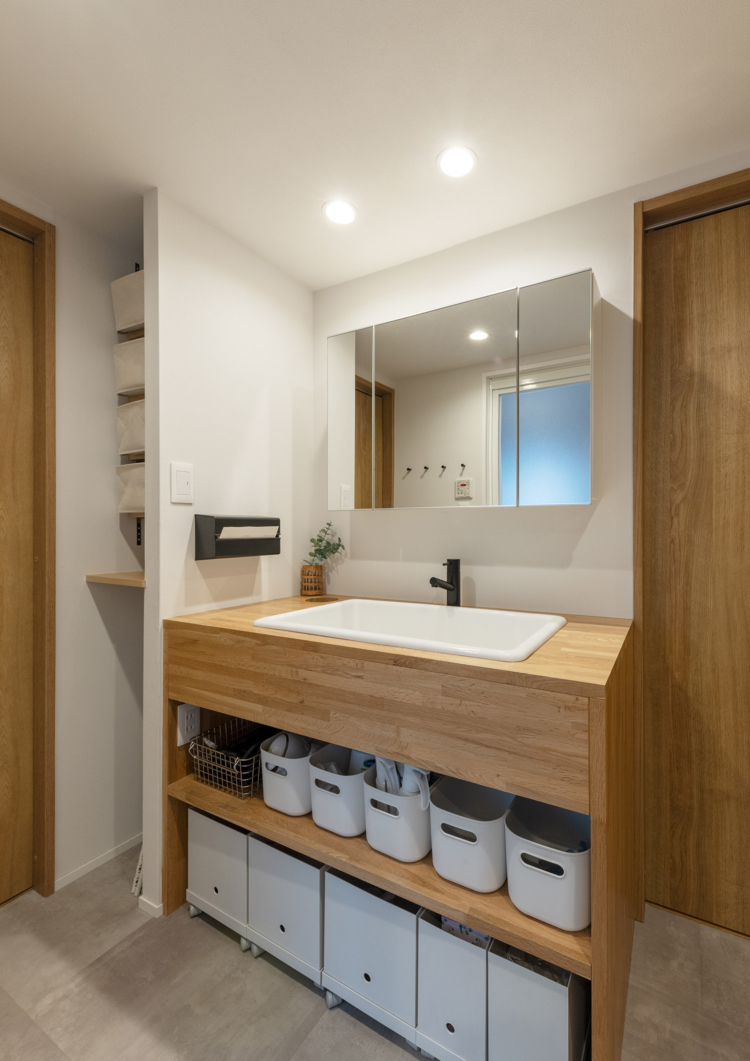 その他、収納空間はあらかじめ、置くものを決めそれに合わせて各所寸法を決めていき、スペースがあく部分はニッチを設け、空間をフル活用。家事負担が軽減された住まいで、ご家族がゆったりと寛げる住まいが完成しました。
