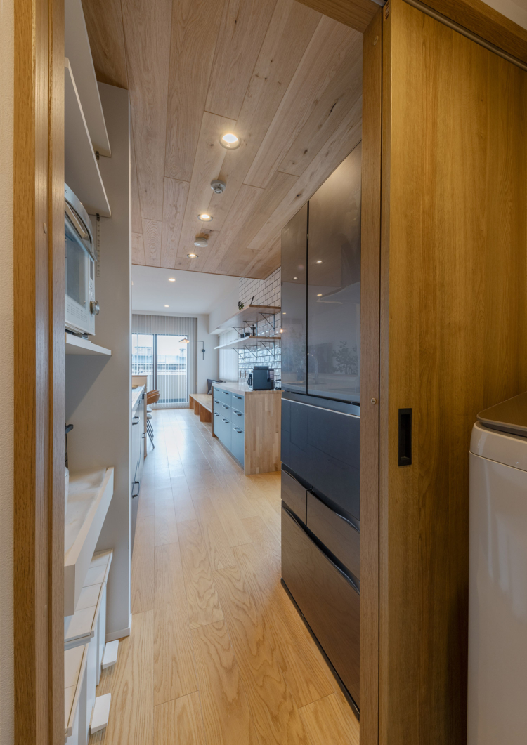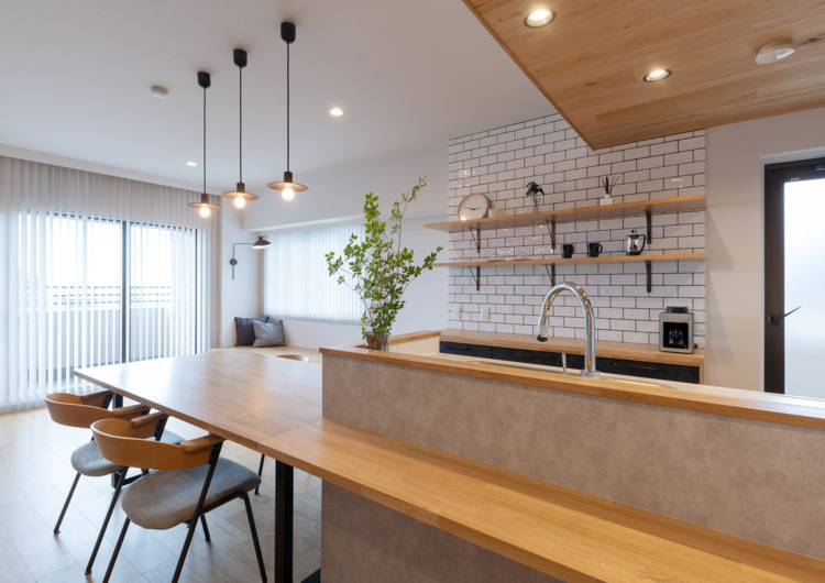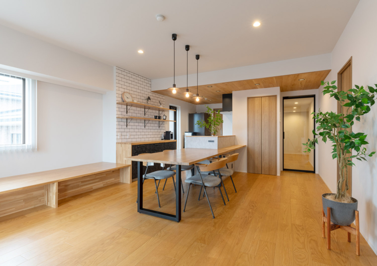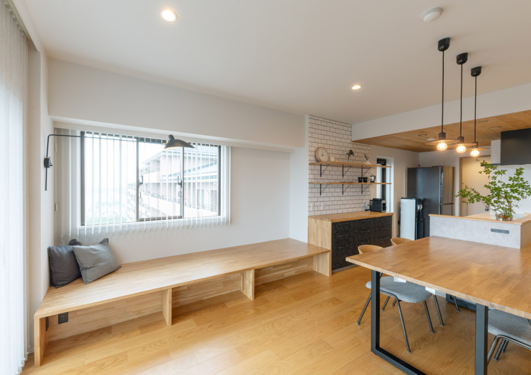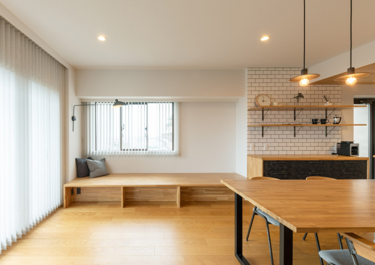 現居が手狭とのことで、慣れ親しんだ多棟型マンションの別棟で条件に合う物件が出ており購入検討をされたお施主様。間取りや住宅設備が暮らしに合わないことから、窓から見える景観を活かした好みのの住まいにするため、フルリノベーションを決断されました。