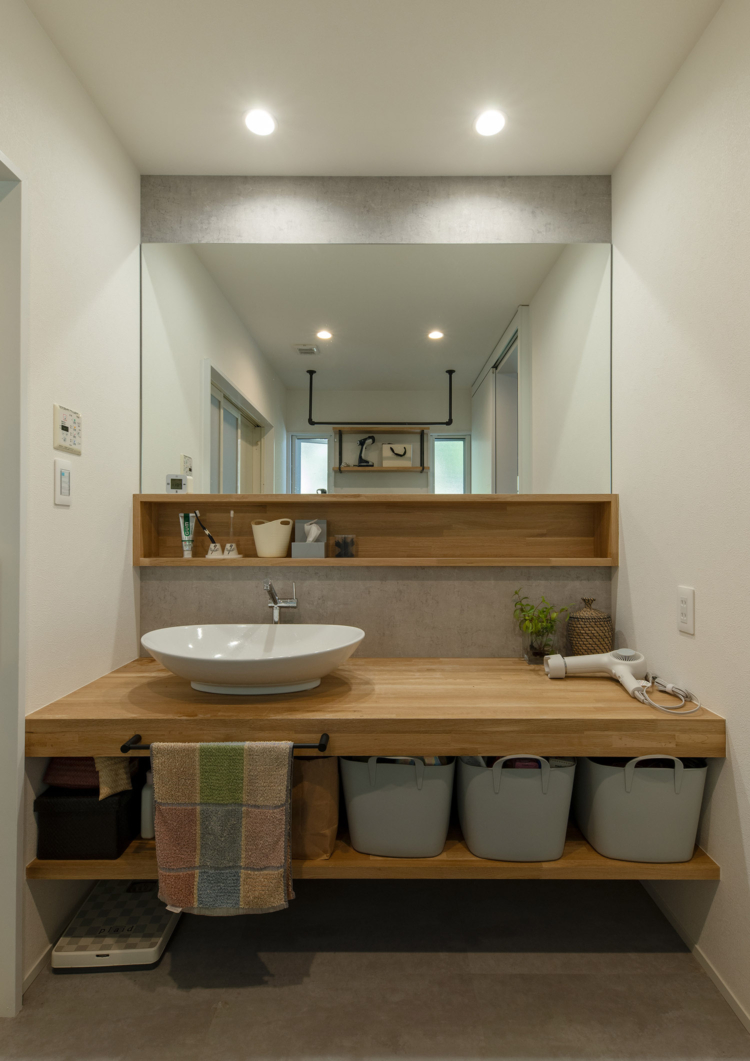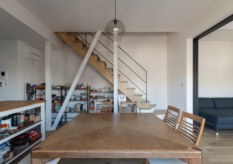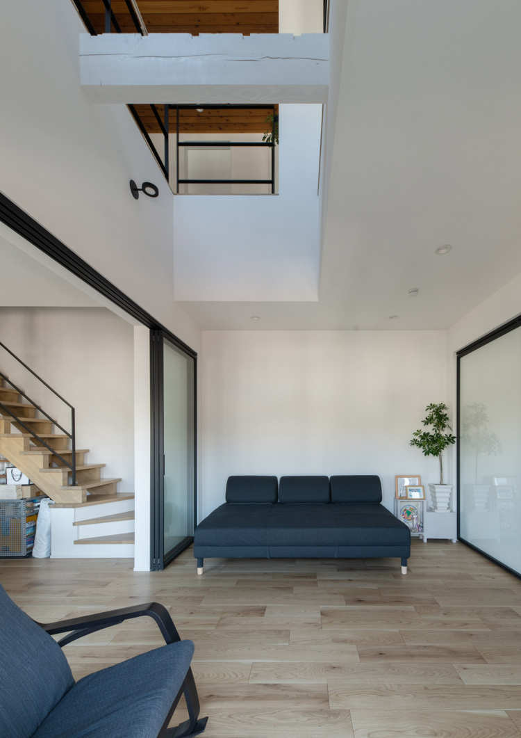 既存住宅は、築20年程の木造在来工法でポテンシャルが高くしっかりとした造りでしたが、居室が間仕切り壁で小さく囲われており閉塞感が強い印象の建物でした。そこでご提案したのが、新たに「吹き抜け」を取り入れた、開放感ある住空間です。