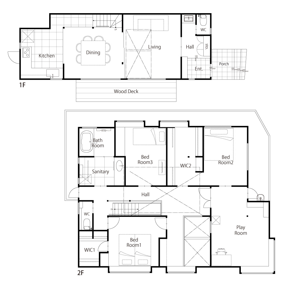間取りは、2階への導線を考え階段を架け替え、子世帯のプライベート空間としてサブリビング→主寝室→W-IN(ウォークインクローゼット)と一体としてして使えるように間取り変更をしています。また、休日に友人を招いてBBQをしたりするとのことで、集まれるLDKとそこから繋がる広いウッドデッキを設けています。