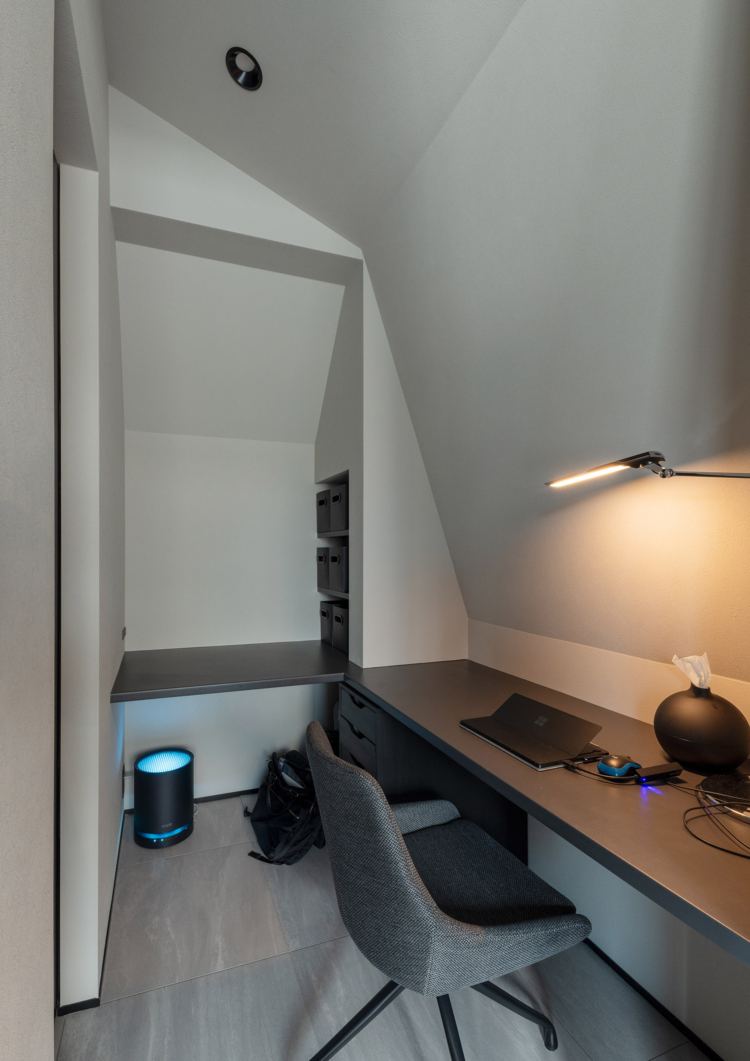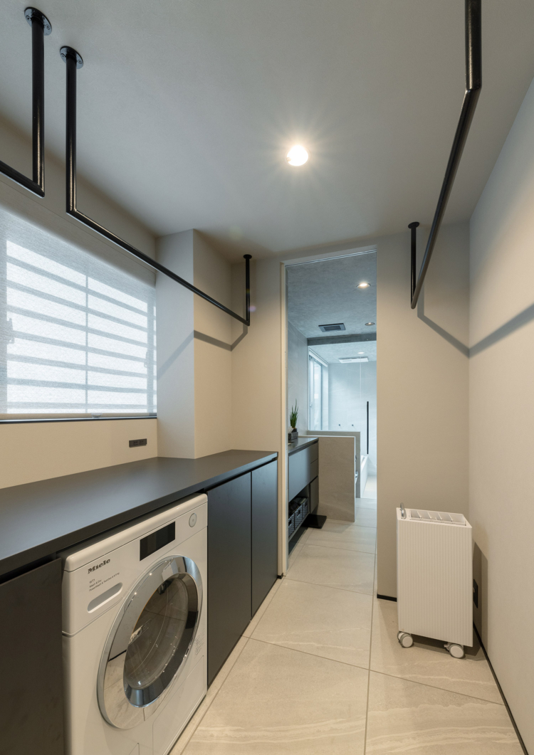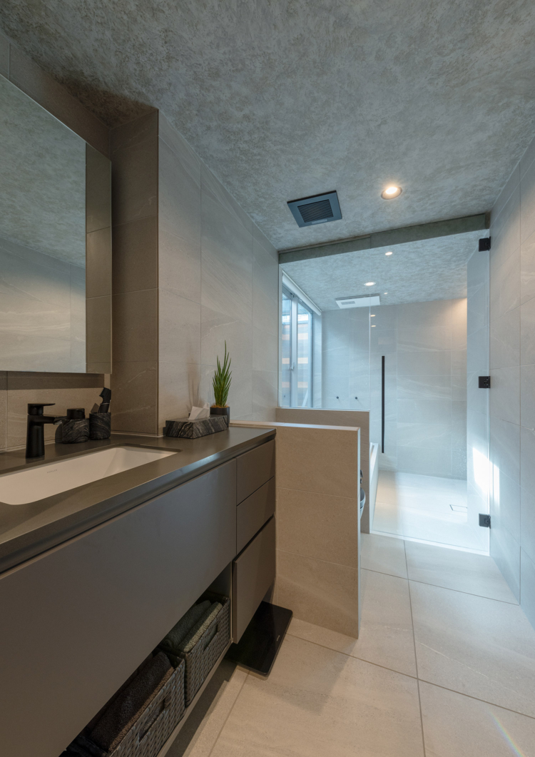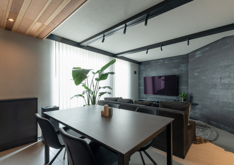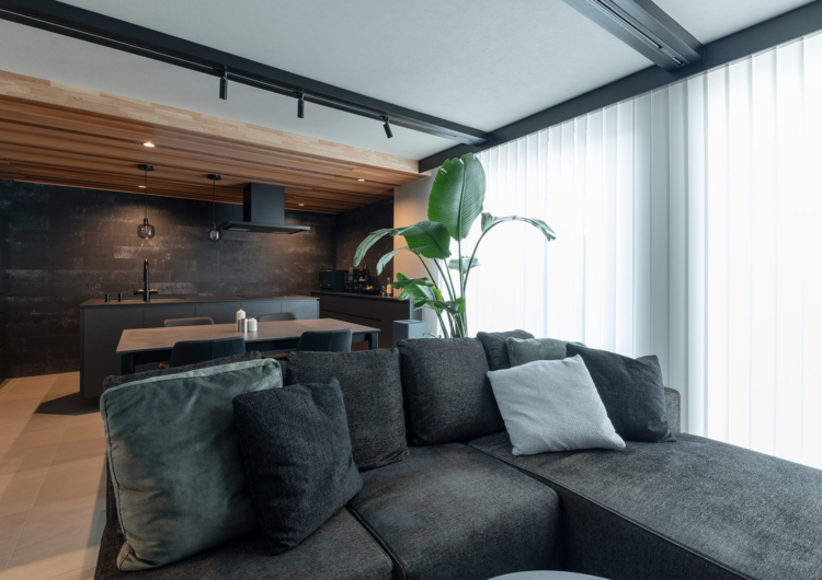 また、ご提案した内観デザインを気に入って頂けたこともあり、住空間だけでなく、設計段階で購入予定の家具・家電空調機器の配置・ウインド-トリートメント(※2)まで相談ご提案させて頂いたことで、より生活感のないホテルライクな空間を実現しました。