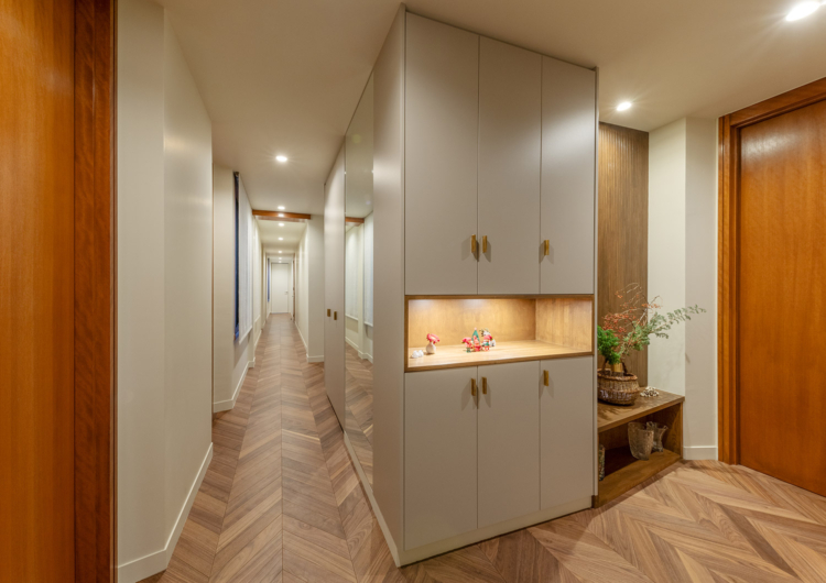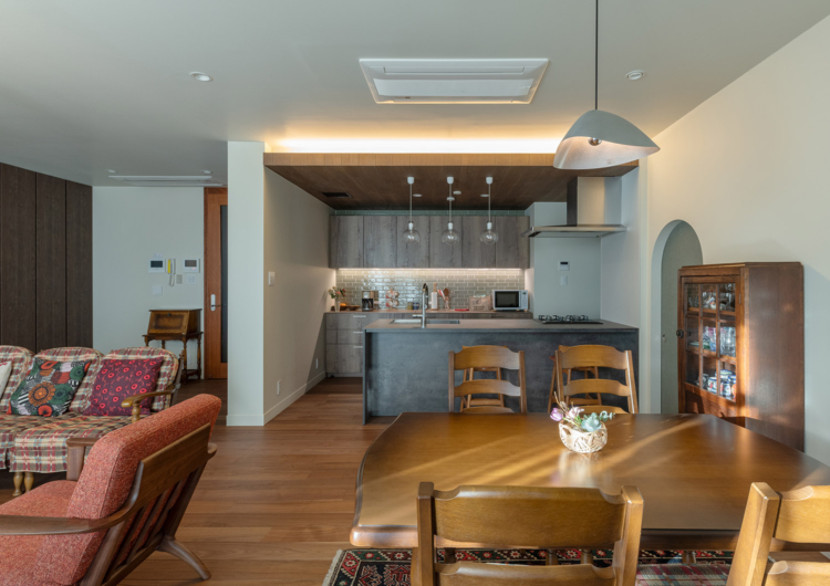 今回ご依頼いただいた建物は、構造上、大きな間取り変更が難しく完全なスケルトンではなく、部分的に既存を利用し、お施主様のこだわりを実現しました。リノベーションするにあたり頂いたご要望は、家事のしやすい動線と独立した書斎、お手持ちの家具に合う落ち着いた空間です。