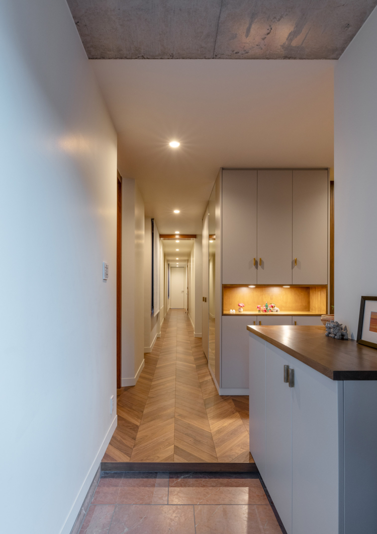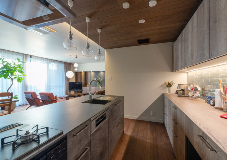 空間デザインでは、造作家具を各所に配置したことで、収納力を確保するだけでなく、お気に入りの家具にも合うオリジナル空間が完成。提案したパース通りになったと喜んで頂きました。