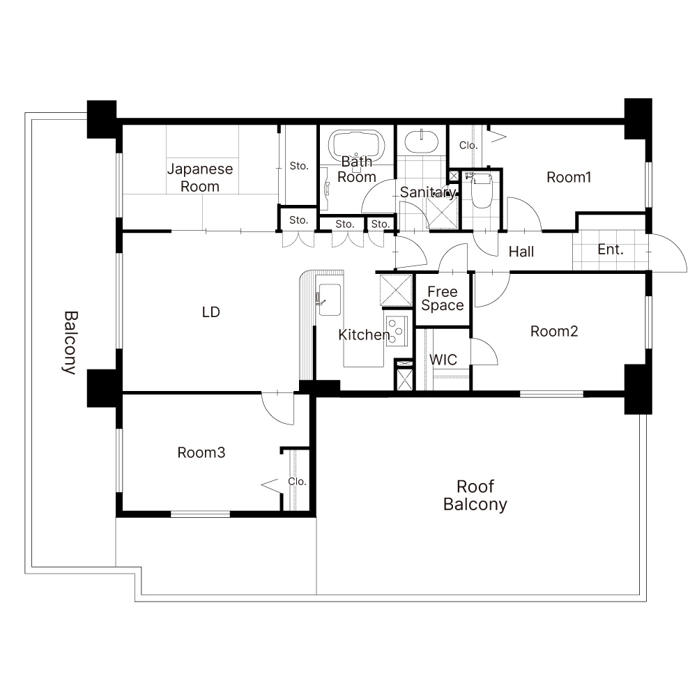 お二人が購入を決断されたのは、3面採光で眺望が良い約90㎡の住戸。広いルーフバルコニーがあり、開放感の高い住空間を作れる物件です。
