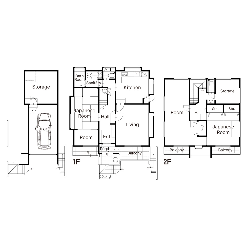 接道と高低差がある土地にある築48年の戸建て住宅を、フルリノベーションされたお施主様。既存の建物は、ビルトインガレージと収納庫が、1階の下にあり住戸内に段差が生じていました。また、空間を分断するように階段が中央に配置されているお住まいでした。