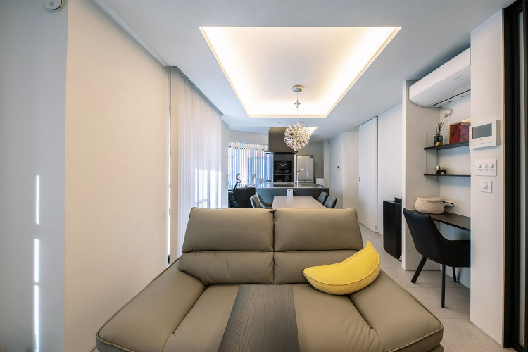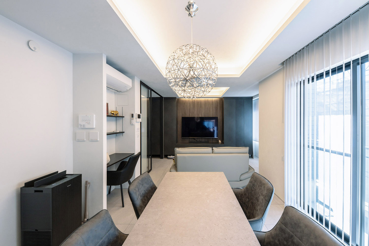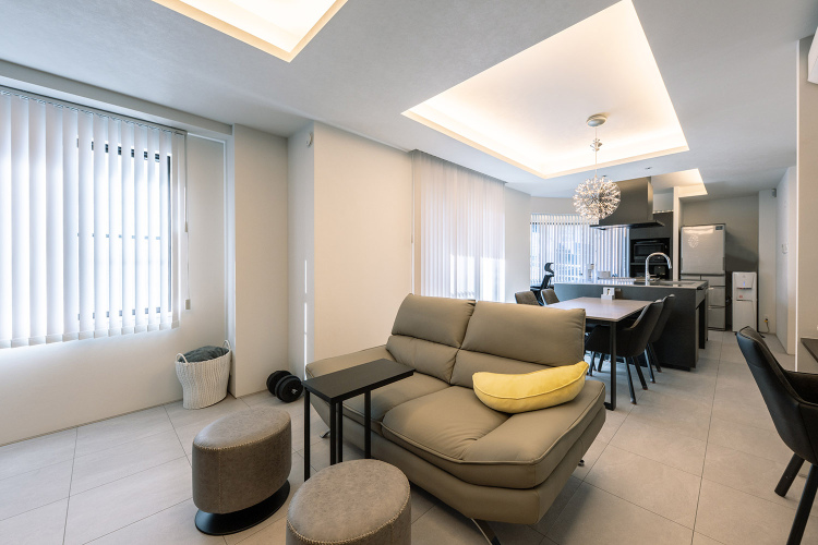 所有されているテナントビルの最上階にあるオーナーハウスを2世帯住宅へと、フルリノベーションするご相談をいただきました。頂いたご要望は、親世帯側へ生活音が聞こえない遮音性と、ライフスタイルの変動に合わせれる間取りと趣味の音楽を気兼ねなく楽しめる防音性の高い空間でした。