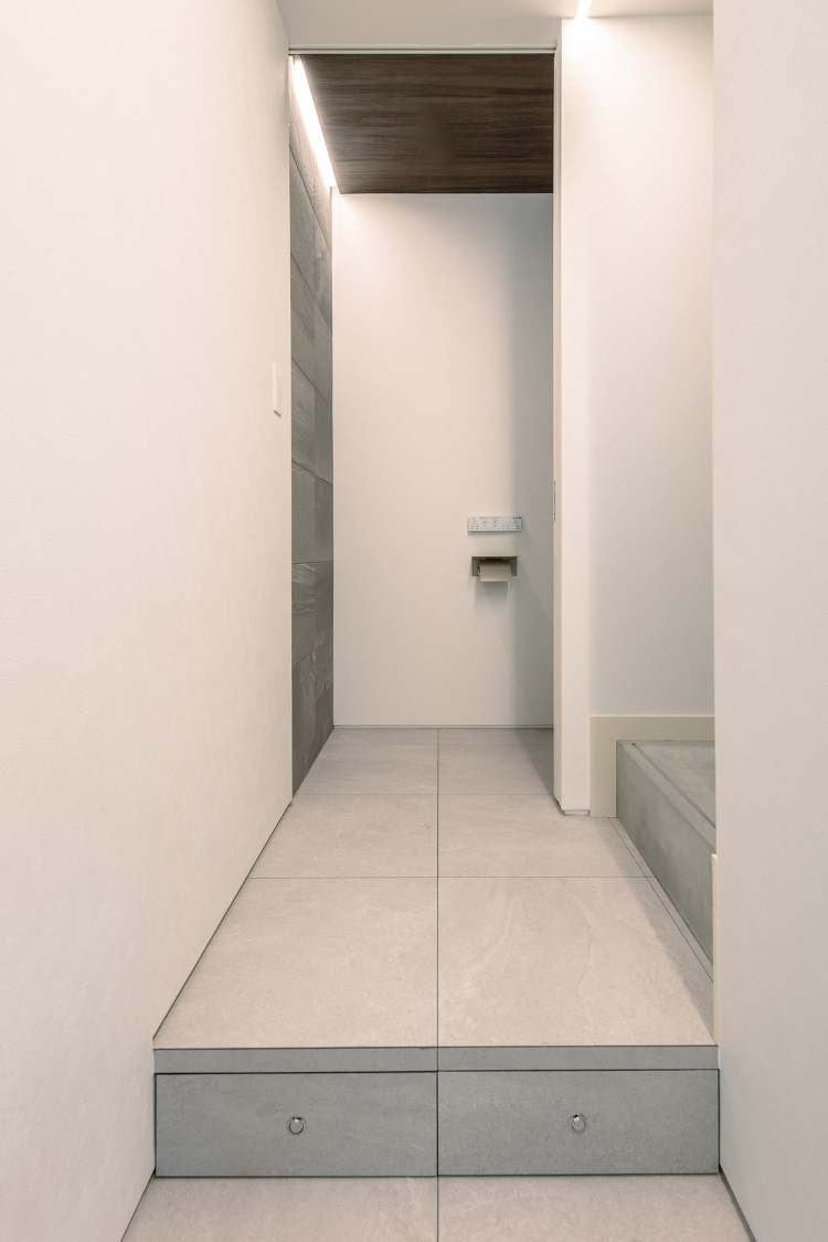 ご要望でいただいた防音性能については、生活音が親世帯側へ音が響かない様に防音壁を設け、生活時間が異なっても気にならない様にしています。もう一つの防音性が高い空間は、音が響きづらい位置に音楽室を設け趣味を満喫できるようにしました。